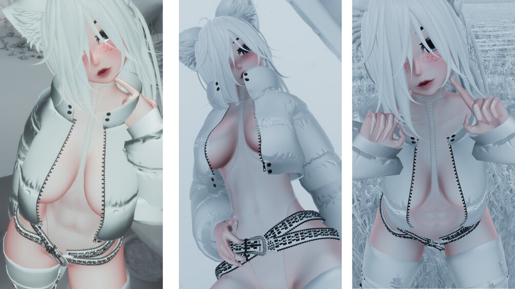 Colors (Eye Hue, Eye Sat, Hair White, Belt White, Bodysuit White, Heels White, Jacket White, & Pasties White)